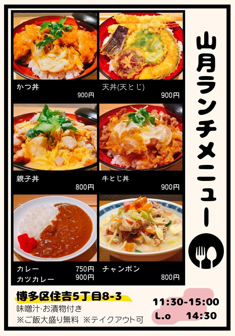 仕事内容 ▛▝▝▝▝▝▝▝▝▝▝▝▝▝▝▝▝▝▝ ▜ ✨博多駅の人気の鮨屋 お昼は丼等を提供 ランチタイムスタッフ募集✨ ▙ ▖▖▖▖▖▖▖▖▖▖▖▖▖▖▖▖▖▖▟ ==================== ◆平日・月~金のランチタイム限定勤務! ※ランチ営業は土日祝休み! ◆時給1100円からスタートです! ◆10時から15時までの働きやすい5時間 ◆主婦さんが活躍中の職場です♪ ==================== ✅お仕事内容  ̄ ̄ ̄ ̄ ̄ ̄ ̄ ̄ ̄ ̄ ̄ ̄ ̄ ̄ ̄ ̄ ̄ ̄ ̄ ̄ ランチタイムのホール業務全般をお任せします。 【具体的な業務内容】 ◆お客様のご案内とオーダー取り ◆出来立てのお料理やドリンクの配膳 ◆食後のテーブルの片付けやセッティング ◆レジでのお会計や店内の簡単な清掃 明るい笑顔でお客様をお迎えしてください。 ◤ ̄ ̄ ̄ ̄ ̄ ̄ ̄ ̄ 働く魅力 ________◢ ✅平日のみの週5日勤務  ̄ ̄ ̄ ̄ ̄ ̄ ̄ ̄ ̄ ̄ ̄ ̄ ̄ ̄ ̄ 平日のランチタイム限定のお仕事です。 土日はしっかりお休みをとれる環境です。 ✅1日5時間で働きやすい  ̄ ̄ ̄ ̄ ̄ ̄ ̄ ̄ ̄ ̄ ̄ ̄ 10時から15時までの勤務となります。 家事や育児との両立もしやすい時間帯です。 ✅嬉しいまかない付き  ̄ ̄ ̄ ̄ ̄ ̄ ̄ ̄ ̄ ̄ ̄ ̄ ̄ ̄ ̄ ̄ ̄ ̄ 当日の繁忙状況によりますが、 美味しいまかないを食べられる日もあります。 ✅主婦さんが多数活躍中  ̄ ̄ ̄ ̄ ̄ ̄ ̄ ̄ ̄ ̄ ̄ ̄ ̄ ̄ ̄ 同じ目線で働ける主婦さんが活躍しています。 困った時はお互いに助け合える環境です。 ✅通勤に便利な博多駅  ̄ ̄ ̄ ̄ ̄ ̄ ̄ ̄ ̄ ̄ ̄ ̄ ̄ ̄ ̄ ̄ ̄ ̄ 博多駅周辺に店を構えているため通勤が便利です。 お仕事帰りのお買い物にも便利な立地です。 ◤ ̄ ̄ ̄ ̄ ̄ ̄ ̄ ̄ 未経験の方へ✨ ________◢ 飲食店での経験がない方も大歓迎です。 優しい先輩スタッフが丁寧にお教えします。 ┏━━━━━━━━━━┓ 当社のご紹介! ┗━━━━━━━━━━┛ 博多駅に店を構える「鮨肴 山月」です。 カジュアルに楽しめる鮨や多彩な魚料理、 季節の食材を提供しています。 平日限定のランチタイムには 丼ものや定食、チャンポンなど。 夜はお寿司や一品料理などをご用意。 幅広い客層のお客様に喜ばれています。 ✨特徴✨ ■ランチメニュー限定の豊富な丼もの、 定食やチャンポン等もあり。 自家製タレを用いてこだわって作っています 店内は明るく落ち着いた雰囲気です。 肩肘張らずに働きやすい環境です。