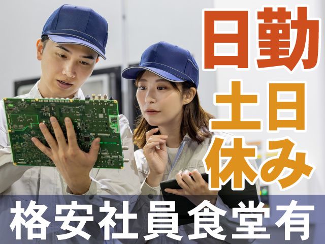 仕事内容 日勤&土日休み 月収例20万円以上可 未経験OK <おすすめポイント> ・無資格/未経験OK ・幅広い年代の男女活躍 ・格安社員食堂有(平均350円) ・直接雇用の実績あり <仕事内容> 電子基板・実装基板製造のお仕事です。 ≪具体的なお仕事内容≫ ・製品を機械OPへセット ・完成品箱詰め作業 ・基板の目視検査 ・動作チェック ・他、不良品の顕微鏡検査など付帯作業 ※作業内容は都度丁寧なレクチャーがあるので、未経験の方も安心してスタートできます <職場について> コンピュータ関連機器や通信機器、電気製品用ボードなどを製造している会社でのお仕事です。 ・制服1着目無償貸与 ・格安社員食堂有(平均350円)