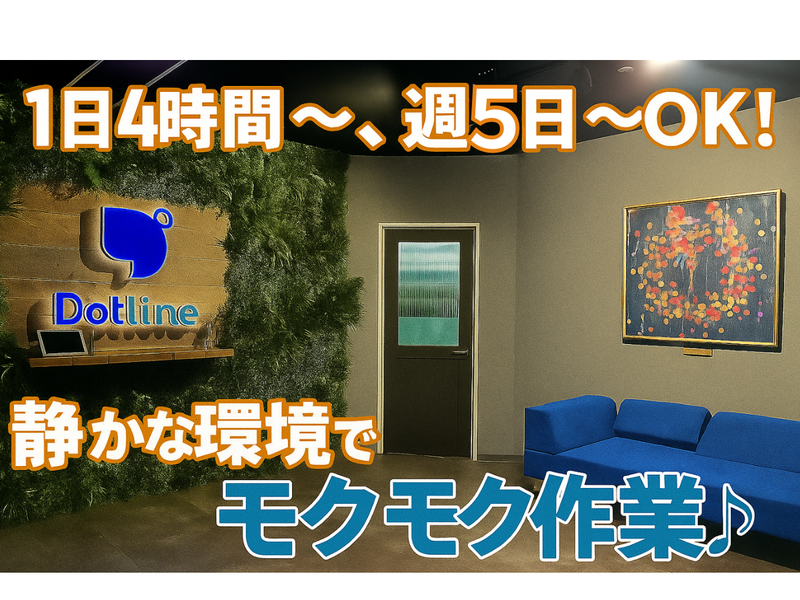 仕事内容 \1月21日(水)・28日(水)/ ⭐説明会&見学会を開催⭐  ̄ ̄ ̄ ̄ ̄ ̄ ̄ ̄ ̄ ̄ ̄ ̄ ̄ 実際にお越しいただいて、職場の雰囲気を 知ってからご応募できるチャンス! スタッフの働く姿やオフィスの空気感、 リアルな現場をじっくりご覧いただけます。 「こんな環境なら安心かも」と感じて 頂けたら幸いです。 もし"応募したい"と思って頂けた方は そのまま選考に進んでいただけます。 また、当日は担当者とのカジュアルな 質疑応答の時間もご用意。 気になることはなんでもご相談 いただけますので、少しでも興味があれば お気軽にご参加ください♪ 参加希望の方はまずご応募ください! [✅時間] 10:00~ /1時間程度 [✅場所] 千葉県千葉市美浜区中瀬2-6-1 WBG 29階 ▶「海浜幕張駅」より徒歩4分 ▶対面を推奨しておりますが、 オンラインでのご参加も可能です! ⏩オフィスワークデビュー・復帰にも◎  ̄ ̄ ̄ ̄ ̄ ̄ ̄ ̄ ̄ ̄ ̄ ̄ ̄ ̄ ̄ ̄ ̄ ̄ ̄ 今回募集しているのは、 データ入力が中心のサポート事務。 社内での入力作業がメインなので、 電話や来客対応などはありません。 コツコツと集中して働ける 落ち着いたオフィスワークです。 「長時間の勤務はちょっと不安…」 「体調に合わせて働きたい…」 「丁寧に確認しながら進めたい…」 そんな方も安心して始められます。 最初は簡単な業務からお任せ。 経験が浅い方やブランクのある方も 少しずつ慣れていける職場です。 ⭐こんな方におすすめ ■事務のお仕事にチャレンジしたい方 ■パソコン入力やデータ整理が好きな方 ■人と話すより作業に集中したい方 ■コツコツ進めるのが得意な方 ■静かな環境で落ち着いて働きたい方 【✅ お仕事内容】 「ドットライン税理士法人」において、 経理・会計の補佐・サポート業務を お任せします。 「補佐」といっても難しい業務ではなく "データ入力"などシンプルな作業を 少しずつお願いしていきます。 ⭐困ったらことがあれば… 経験豊富な就労支援員がしっかりサポート! 障がいのある方が安心して働ける、 あたたかい職場づくりを大切にしています。 まずは自分の得意なことからスタートし、 少しずつできることを増やしていけます♪ ・―・・―・・―・・―・・―・・―・・―・・―・・―・・―・ ⭐ここがポイント!⭐ ✅電話応対・接客なし! 集中して作業できます。 ✅障がい福祉・千葉県最大級の規模を誇る 「ドットライン」が運営! ✅障がいの状態や得意なことに合わせて、 お仕事の内容を調整できるので安心♪ ⏩「人と話すより、モクモクとPC作業を する方が好き」という方にピッタリ♪ 初めてでも研修があるので、 安心してスタートできますよ。 ・―・・―・・―・・―・・―・・―・・―・・―・・―・・―・ <1日の流れ> 9:30 出社。まずは作業準備からスタート♪ 9:40 パソコンを使ってデータ入力。 コツコツ進めていきます。 11:45 お昼休憩でリフレッシュ♪ 12:30 午後の作業開始。 引き続きパソコン入力を進めます。 16:00 仕事終了!お疲れさまでした。 ・―・・―・・―・・―・・―・・―・・―・・―・・―・・―・