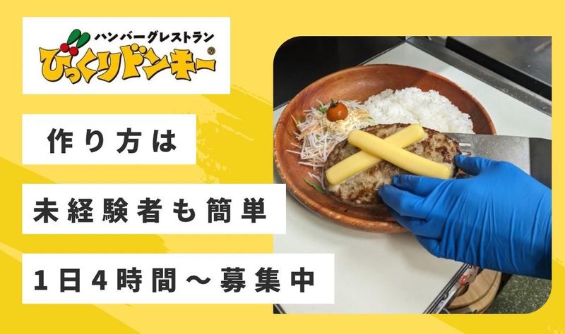 仕事内容 ■包丁を使う工程はほぼなし! ハンバーグディッシュなどびっくりドンキーの 人気メニューを作る調理のお仕事。 ハンバーグがメインなので 注文にあわせてトッピングを変更する程度! 他のレストランメニューより覚えることは少ないです。 具体的には ・トマトのカット ・専用機械でハンバーグの調理 ・野菜やハンバーグの盛り付け ・片付けと食材補充 など ■店内メニュー70%OFFなど 長く働いていただけるよう待遇も充実! 人気メニューのハンバーグディッシュも 同じボリュームで約230円~食べられます! ■週1~OK! 土日祝はWワークや短時間勤務もOK! 「日曜日の〇時~〇時まで」 「毎週固定で働きたい!」 なども可能なので、 ぜひご相談ください♪ ■マイカー通勤もOK! びっくりドンキー宇品店はフレスタや セリアなどと同じ敷地内にある店舗。 広い無料駐車場にとめていただけます。 自宅からお店まで片道2km以上ある方は ガソリン代も支給ありです!