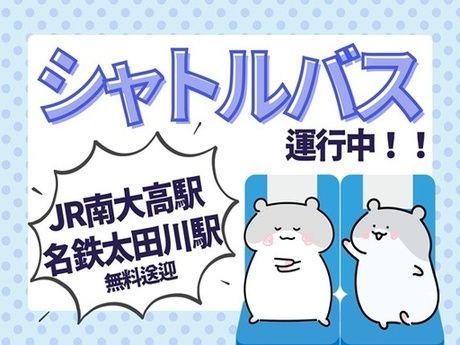 アクセス JR東海道線「南大高駅」から車で約10分、名鉄常滑線「名和駅」から車で約7分、名鉄河和線「太田川駅」から車で約16分★車通勤OK(敷地内駐車場あり)、JR南大高駅・名鉄太田川駅より無料シャトルバス運行