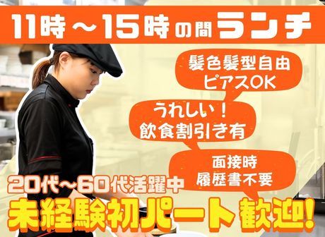 【11時~15時、週3日から、1日4時間~OK】髪色自由・ピアスOK|美味しいまかないあり!お仕事ブランクOK