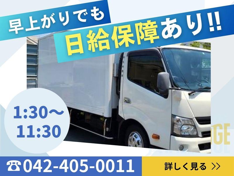 仕事内容 ◤◢◤◢◤◢◤◢◤◢◤◢◤◢◤◢◤◢ ⭐中型免許があればOK! ┏━━━━┓⭐未経験からスタート可 ┃ポイント┃⭐高日給1万5000円!! ┗━━━━┛⭐早上がりでも日給保障 ⭐ガッツリ稼げる夜勤! ◤◢◤◢◤◢◤◢◤◢◤◢◤◢◤◢◤◢ ⏩お仕事内容  ̄ ̄ ̄ ̄ ̄ ̄ ̄ 飲食店などへの固定ルート配送です! 2tまたは3t車の冷凍車に乗り 「多摩地区」「23区」にある スーパーなどへ食品を配送します。 固定ルートで1日120km程度です。 未経験からスタートする方多数! ルート配送なのでシンプル業務です。 一人立ちするまではしっかりと お教えしますのでご安心ください◎ 中型免許をお持ちでない方は 入社後に取得も可能★ ══ ▼▽▼この仕事の魅力▼▽▼ ══ ⭐夜中だから渋滞なし!⭐ 交通量が少ないのでスイスイ進めます♪ どれだけ早くあがっても日給全額保障◎ ⭐稼げる夜勤で高収入GET!⭐ 中型免許があれば経験は問いません! 未経験でも高日給1万5000円~スタート ══════════════════ ⏩毎月安定した収入を稼げます!  ̄ ̄ ̄ ̄ ̄ ̄ ̄ ̄ ̄ ̄ ̄ ̄ ̄ ̄ ̄ 月収34万5000円以上可能!! 日給1万5000円!月23~24日稼働で 安定した高収入を実現できます◎ 23日勤務のシフトは自由なので 都合に合わせて勤務していただけます。 現在、30代・40代のスタッフを中心に おおよそ20名のスタッフが在籍中です✊ ══════════════════ ⏩入社後の流れ  ̄ ̄ ̄ ̄ ̄ ̄ ̄ ̄ ▼STEP1 先輩スタッフの担当地域に同乗し 仕事の流れを覚えていただきます! ▼STEP2 自分が担当する担当地域に 先輩スタッフが同乗して配送します。 ▼STEP3 一人でまわれるようになります! 運転中は自由に過ごせるので 好きな音楽をかけながらドライブ感覚◎ 基本一人での作業になりますので 自分のペースで黙々と 働きたい方にピッタリです♪ ══════════════════