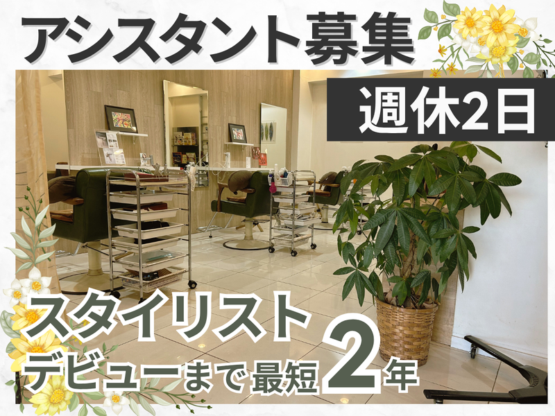 仕事内容 \美容師としての再スタートを応援✨/ 久しぶりの現場でも安心して働ける、 そんな環境が整った職場です。 主婦層やブランクのある方も歓迎で、 落ち着いた客層の中でゆっくり成長できます♪ ❖週休二日と残業月十時間以内❖ ────────────────── ブランクがあっても心配いりません◎ 来店されるのはゆとりある主婦層が中心。 「美容の仕事にもう一度戻りたい」 その気持ちに寄り添うサロンです♪ 「資格はあるけど期間が空いて不安」 「美容師として再挑戦したい」 「子育てが落ち着き働きたい」 そんな方にもぴったりの職場です。 ─────────────── ……⭐今の環境と比べてみてください⭐…… 無理なく働けてしっかり学べる制度が充実♪ ─────────────── ✅週休二日制+長期休暇あり ✅夏季と年末年始の休暇も取得OK ✅残業少なめ(月十時間以内) ✅最短二年でスタイリストデビュー ✅研修や講習が手厚くブランク歓迎 ✅社員旅行など社内イベントも実施 ✅少人数サロンで落ち着いた接客 ✅リピーター多数で安定集客 ✅新浦安エリアでゆとりある客層 ┏━━━━━━━━━━━━┓ ❖サロンの雰囲気をご紹介 ┗━━━━━━━━━━━━┛ 地域に愛される少人数制サロンです。 ゆったりした空間で丁寧に施術でき、 お客様との時間を大切にできます。 来店されるのは落ち着いた主婦層が中心。 慌ただしさに追われず働けるため、 あなたらしい美容師像を目指せます♪ ────────────────── ………⭐お仕事内容について⭐……… ────────────────── スタイリストを支えながら、 技術を身につけていくポジションです。 …【主な業務は三つ】… ①施術のアシスト ────────────────── ▨シャンプー トリートメント ▨ドライ補助 カラーやパーマ塗布 ▨ヘッドスパやマッサージなど ▶感覚を少しずつ取り戻しながら復帰♪ ②店舗業務のサポート ────────────────── ▨道具の洗浄や消毒 管理 ▨店内清掃 受付や会計補助など ▶お店全体を支える役割として活躍♪ ③技術習得のサポート ────────────────── ▨空き時間や営業後の技術練習 ▨先輩の施術サポートを通じた習得 ▨講習会や研修で学ぶ機会も多数 ▶最短二年でデビューが目指せます! ✅全てを急に任せません できることから始められるので安心。 先輩が丁寧に教える環境が整っています。 ────────────────── ……⭐家庭との両立もしやすい環境⭐…… ────────────────── 「週休二日+長期休暇」で、 家庭や子育てとの両立も無理なく可能。 自分のペースで長く続けられる働き方です♪ ┏━━━━━━━━━┓ ❖応募をご検討の方へ ┗━━━━━━━━━┛ 現在、業務拡大に伴い新しい仲間を募集中。 ブランクがあっても大歓迎です。 見学のみの参加もOK。 興味のある方はぜひお早めにご応募ください♪