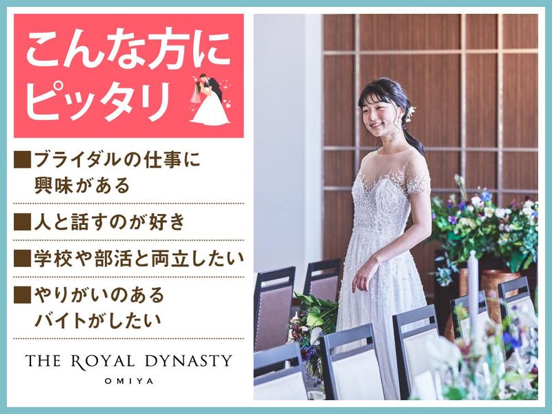 仕事内容 *アンティークモダンな結婚式場* ✅感動いっぱいの結婚式を一緒にサポート♪ ✅春のバイトデビューにオススメ★ ✅授業やサークルのない日に勤務OK◎ ・履修登録が終わって落ち着いてからの勤務 ・GW明けから働きたい ・まだ4月以降の予定が未確定 ・だけどバイトは決めておきたい…! 何かと忙しい、そんなあなたも大歓迎です! まずはお気軽にご応募ください(^^)/ <主なお仕事内容は…> 結婚式場スタッフとして 次のお仕事をお任せ! ■会場の準備 ■お客様の上着や荷物のお預かり ■お席のご案内 ■結婚式のお料理・ドリンク提供 ※キッチン業務はありません◎ ―――――――――――――――― 学生が活躍中! オススメポイントはこちら★★ ―――――――――――――――― ・授業やサークルとの両立応援! ・週1日~1日4時間~OKで融通 ・絶品のまかないアリ(^^) ・同世代が多くて安心◎ まかないは本格料理人たちが 美味しい食材を使って作ってくれます♪♪ 現在はアルバイト・パート30名が在籍中! お友達同士の応募も大歓迎です! 敷居が高いイメージがあるかもしれませんが みんなで協力しながら準備して… 毎日、文化祭みたいな雰囲気なんです♪ 素敵な仲間に出会える そんな場所になると思います◎ ついでに… 社会で活躍するためのマナーも学べますし、 実は就活に役立つのもうれしいポイント! ―――――――――――――――― 特別な1日をサポートするお仕事 具体的な仕事の流れは? ―――――――――――――――― ▶STEP.1 ミーティング 披露宴の流れやお料理について スタッフ間で事前に確認して 式中にバタバタしないようにします◎ ▶▶STEP.2 披露宴会場の準備 お席に置く名札や ゲストの方に渡す引き出物を確認したり グラスを磨いたりして準備します。 ▶▶▶STEP.3 お客さまのお出迎え 荷物をお預かりし、 待合室でドリンクをお出しします! ▶▶▶▶STEP.4 ホール業務 お席にご案内し、順番にお料理や ドリンクを提供します◎ ―――――――――――――――― 未経験者歓迎! みんなで助け合う雰囲気です ―――――――――――――――― 最初は結婚式の見学からスタート! 見学後は本番じゃないところで、 同世代を集めて研修を実施。 飲食業やホールスタッフが 初めての子には、 お盆の持ち方から教えます! 「人が喜ぶ姿が好き」「サプライズが好き」 という方必見!スキルや経験は一切不要♪ 一緒に素敵な結婚式を演出しましょう*