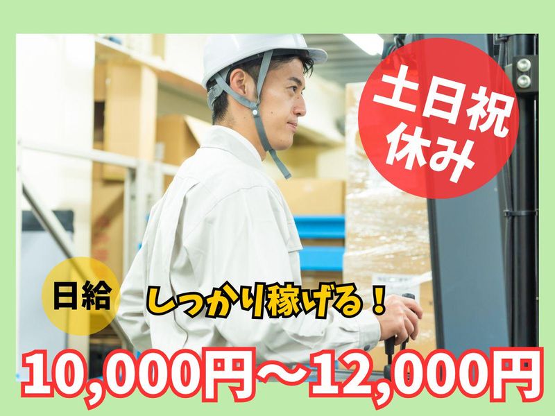 仕事内容 ⭐-⭐-⭐-⭐-⭐ 資格取得支援&正社員登用制度あり! \\日給10,000円~12,000円// 平日のみでしっかり稼げます♪ ⭐-⭐-⭐-⭐-⭐ フォークリフト免許をお持ちの方は注目! 経験を活かして、心機一転!新しい職場で活躍しませんか?✨ 倉庫内でのフォークリフト作業及び配車・倉庫管理補助のお仕事です。 ✅フォークリフトでの運搬作業 ✅配車のサポート作業 ✅倉庫管理のサポート作業 パレットに積まれたレンガの運搬作業をメインに、パソコンやバーコードスキャナーを使う作業もお任せします! 配車は主にパソコンでの入力作業です。荷物を出荷する際に「この荷物をこのトラックに積む」といった情報を打ち込んでいきます。パソコン操作が苦手な方でも、慣れれば簡単なのでご安心ください♪ また、倉庫管理では在庫のチェックなどをお任せします。バーコードをスキャンしていくだけなので、初めての方でもサクサク進められますよ! <ここがポイント> ⭐高日給で安心 ⭐土日祝はお休み ⭐充実のサポート体制 ⭐残業ほぼなし ⭐正社員も目指せる環境 ⭐副業OK