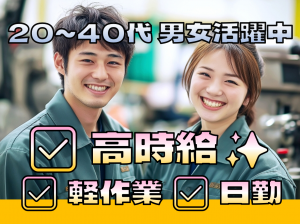 インフォメーション 武蔵藤沢駅より車で10分♪月収27万円以上可。日勤×土日祝休み×残業多めで稼げます!未経験歓迎。履歴書ナシで即面接可。車通勤OK \残業多めで稼げます/ ◎月収27万円以上可 ◎未経験OK ◎日勤のみ ◎土日祝休み ◎交通費全額支給 ◎車・バイク通勤可 ※駐車場代は半分支給あり! ★履歴書ナシで面接できます★ 最速即日面接&工場見学も可! アピールポイント シグマテック川越作業所が紹介するお仕事は 工場での作業員のほか、物流拠点での倉庫内作業(軽作業)や 梱包や仕分け、ピッキング、出荷準備など 様々な業務がございます! 組み立てや加工、検査や検品、 ボタンを押すだけの機械オペレーターのお仕事もございます。 週3で!日勤だけ!夜勤だけ!交替勤務で!などシフトも様々ですので、 まずはお問い合わせだけでもOKです!お仕事紹介いたします! 経験者の方はもちろんですが、未経験から始められる方も沢山いらっしゃいます! 事務やアルバイトやパートの経験しかなくて・・なんて方もご安心ください! ハローワークでお仕事お探し中の方もお気軽にお問い合わせください!! ーリモートお事説明会開催中!ー ご予約不要・服装自由・手ぶらOK!お気軽にお問い合わせください。 自分力バロメータ マナー(常識) 責任感 理解力