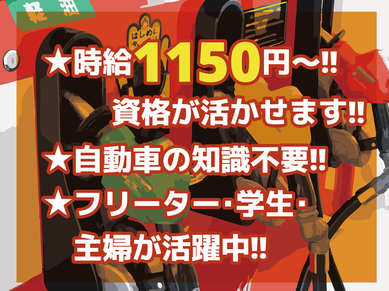 【保険制度】 雇用保険、労災保険、健康保険、厚生年金 待遇・福利厚生 【福利厚生】 ・スタッフ割引あり!(ガソリン・オイル交換がお手頃価格でできちゃいます!) ・昇給あり ・危険物手当 3000円 ・報奨金制度あり ・各種社会保険完備 ・社員登用あり ・制服貸与 ・扶養内OK