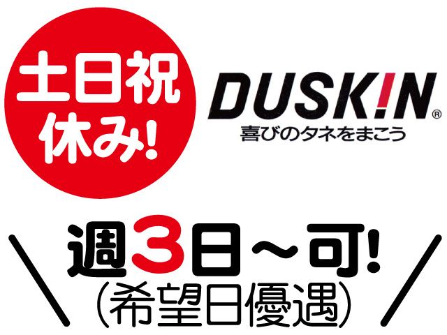 勤務時間 (1)9:00~14:00 (2)10:00~15:00 ※お好きな時間帯選べます。 ※週3日~5日位勤務できる方(希望日優遇) ※学校行事等も優先OK