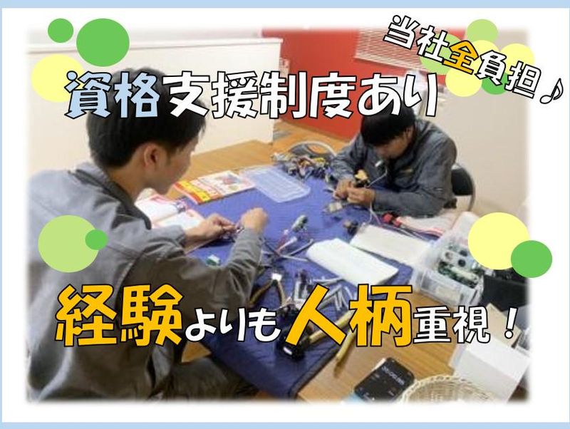 仕事内容 #電気工事のプロフェッショナル企業 #安定需要で業績は年々、右肩上がり #業務拡大につき、増員のため大募集! ╭━━━━━━━━━━━━━━━╮ ・。⭐ おすすめポイント⭐。・ ╰━v━━━━━━━━━━━━━╯ ◆未経験・無資格でも安心のサポート体制! 最初は先輩と一緒に仕事の流れを 覚える所からスタート。 工具の名前や使い方も1つずつ 丁寧に教えていきます! ◆頑張りはしっかり還元! 昇給:今年は社員の半数以上が昇給 賞与:年4回の賞与あり! ◆資格取得制度でキャリアアップ! もちろん費用は全額会社負担。 先輩が全力でサポートします! ╭━━━━━━━━━━━━━━━╮ ・。⭐ 仕事内容⭐。・ ╰━v━━━━━━━━━━━━━╯ 新築・増築・リニューアル等の電気工事です! 未経験・無資格の方も大歓迎です。 最初は先輩と一緒に現場に入り、 配線作業の準備や照明器具の取り付け補助など、 カンタンな作業からスタートします。 工具の名前や使い方も一つずつ教えるので、 専門知識や資格がなくても問題ありません! 対象施設は、 大型商業施設・オフィスビル・ホテル・ 官公庁・学校施設など多岐にわたり、 所謂「ランドマーク」となる施設が多いです。 有名な建物の施工に関わることもあり、 「ここ、自分がやったんだ!」 と誇りを持てる仕事です! ╭━━━━━━━━━━━━━━━╮ ・。⭐ 会社の雰囲気⭐。・ ╰━v━━━━━━━━━━━━━╯ ◆有給休暇取得率90%以上! 夏季休暇・リフレッシュ休暇も有りで プライベートも充実! ◆飲み会などの社内イベントは、自由参加 無理な付き合いは一切強制しません。 行きたいときに行ける、休みたいときには休む。 気軽に集まれる雰囲気こそ、弊社ならでは。 今年は社員旅行もあり、 宮古島でバカンスを楽しみました! ◆社員の意見を大切に! どうしたらより働きやすくなるのか? みんなが同じ目線で意見交換できる環境です! *** 「見て覚える」よりも 「理解しながら学ぶ」ことが大切なので 先輩が基本から、丁寧に説明しながら教えます。 先輩に支えてもらいながら、 一緒に頑張りましょう(^_^) 何か気になる事などありましたら お気軽に下記連絡先までご連絡ください! 「WEBじゃなくて電話応募がいい」 という方もこちらからどうぞ◎ TEL▶080-7961-1367(採用担当)