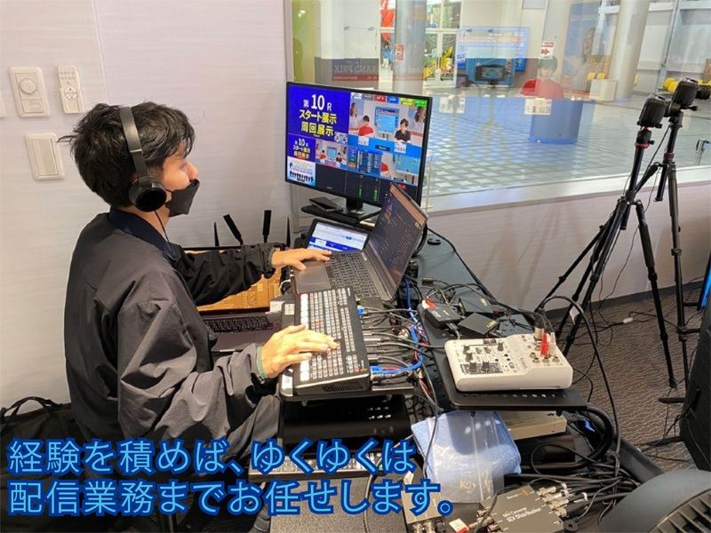 仕事内容 ボートレース住之江で“リアル”を届けるお仕事! ボートレース住之江の場内で、レース情報をリアルタイムで発信するお仕事です! イベント運営や配信サポート、イベント企画立案の営業職(ディレクション)など… 各種イベントにおけるスタッフ業務全般に携われるのでキャリアアップに最適! ★具体的なお仕事 まずはココからスタート! (1) ホワイトボード作成 解説内容をまとめて、来場者向けに掲示! 「初心者にもわかりやすく」がポイント◎ あなたの工夫が売上UPにもつながります♪ (2)Web・SNS発信 ブログやX(旧Twitter)で情報発信 リアルタイムでレース情報を投稿! SNS好きな方にピッタリ (3) 配信サポート・機材操作 資料配布やモニター・音響の操作など。 簡単な機材メンテナンスもお願いします! (4)YouTube配信オペレーション カメラ切り替えやテロップ制作など 映像をより見やすくするお仕事! (5)出演者サポート 出演者へ進行内容をレクチャー♪ 番組づくりを裏から支えます。 (6)映像送出・タイムキープ 専門チャンネルへの映像送出を担当。 放送のタイミングを管理する、ちょっとプロっぽい仕事です ★(1)~(6)まで仕事の知識・経験を基にステップアップ 正社員として(7)ディレクションの仕事もして頂きます (7)営業職(ディレクション) イベント企画立案、配信におけるディレクション ユーザー折衝業務 【業務の変更範囲】 なし 【勤務地の変更範囲】 なし