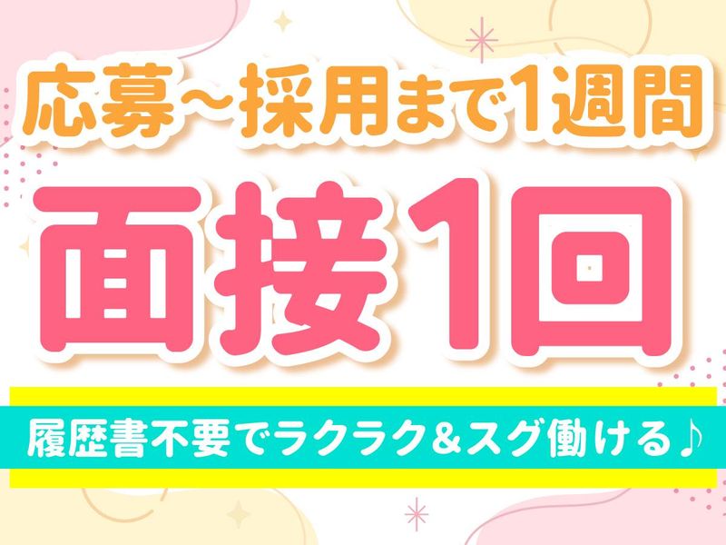 選考プロセス <<履歴書不要!!>> 応募から採用まで即日勤務OK! お仕事開始したい時期もご相談ください♪ 応募(まずは質問だけもOK!) ↓ メール、お電話でご連絡 ↓ 面接(1回のみオンラインで実施) ↓ 内定・採用 \ 応募を迷っている方へ / 「ブランクがあって不安…」「今の職場より条件が良くなるなら考えたい」という段階でも大丈夫です。 面接というよりは、まずは「条件の確認」や「お悩み相談」のつもりでお気軽にお越しください! 入社時期の調整OK: 1ヶ月先、3ヶ月先の入社希望の方も歓迎です。