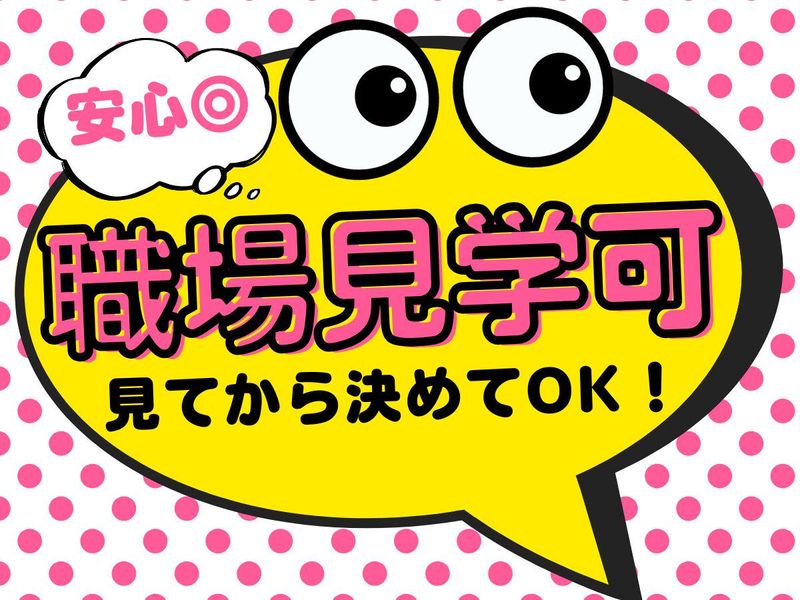 求めている人材 応募資格 未経験OK!資格不問! 20代・30代・40代の女性活躍中★ お気軽にお問い合わせください♪ ╭━━━━━━━━━╮ 派遣デビューも大歓迎❗ ╰━v━━━━━━━╯ お仕事のご紹介から面接、就業開始後の フォローまで、すべて専任の担当者が 一貫してサポートします。 働き始めてからも、困ったことや不安な ことがあればいつでも相談できます! ◎将来は正社員を目指したい ◎安定した収入を得たい そんな方も大歓迎。 あなたのご希望や条件を丁寧にお伺いし、 無理のない働き方をご提案します。 派遣が初めての方も、安心してご応募 ください。