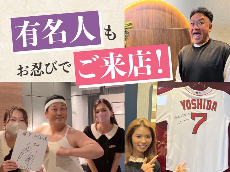 勤務地 当店は“マンションの一室”ではなく、安心感のあるテナント店舗です。 デザイナー設計によるこだわりの内装で、清潔で働きやすい環境を整えています。 著名人やメジャーリーガーの方もお忍びで通うほど信頼をいただいており、スタッフにとっても誇りを持って働けるサロンです。