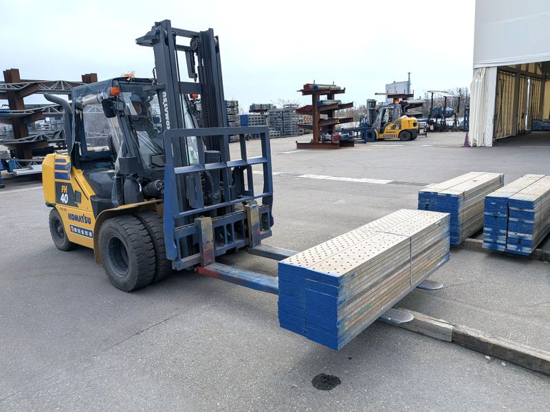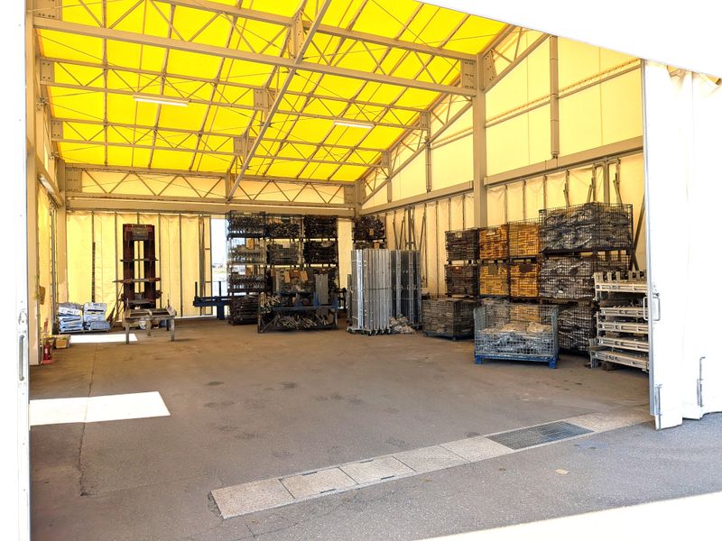 足場材などを保管する構内作業スタッフ