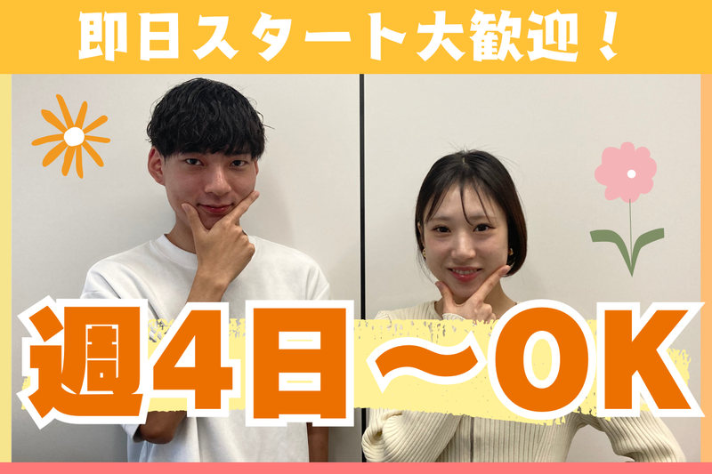 週4日から勤務可&残業ほぼなし☆即日勤務も大歓迎!