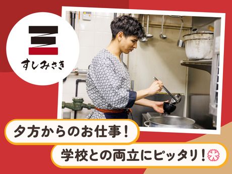 仕事内容 【仕事内容】キッチン中心のお仕事 お寿司を握ったり、軍艦の盛り付けや洗い場、魚の切り付け、その他揚げ物・茶碗蒸し・みそ汁といったサイドメニュー作りもお任せします。最初から複数のポジションをお願いするわけではなく、1つ1つ作業を覚えていけばOKです。もちろん丁寧にお教えしますので、調理未経験の方も安心してください。お寿司職人を目指す方も歓迎。※店舗の状況によっては、ホール業務をお任せする場合もあります <未経験の方OK> 特別な技術は必要なし。簡単な盛り付けや洗浄など、できることから徐々にお願いしていきます!ささいな事でも気軽に質問できる先輩スタッフがいますので、安心してスタートできます♪ <夕方からゆったり出勤> 日中は学校や予定がある方、あまり時間が早すぎない仕事を希望されている方にもピッタリ!開店前のお仕事なのでシフトはお昼前後がメインで、短時間勤務(1日4h以内)も可能です◎勤務日数は週2日~OKでシフト相談可能!ライフスタイルに合わせて働きやすいのが特徴です! 【自分に合った働き方が見つかる】 授業や部活、テスト期間に合わせて勤務したり。 家事・育児の合間に短時間で程よく働いたり。 週5日レギュラー勤務で、職場のみんなを引っ張ったり。 留学生が初めてのバイト先として選んでくれたり。 お店は様々なスタッフのおかげで成り立っています。 あなたはどんな働き方をしたいですか? 私たちのお店では年齢・経験・性別関係なく働きやすいと感じていただける 環境を整えています。 様々なスタッフが働くお店でたくさんの出会いに触れながら、一緒に働きましょう! まずは希望の働き方や不安なことがあれば気軽に相談してください。 【ココが嬉しい】お得な食事補助あり 勤務日には「お店のメニューが半額」「日替わりのまかない丼が1品308円」のどちらかを選べる食事補助あり!鉄板メニューから贅沢なメニューまで、お得な補助制度を活かしてぜひ勤務日の楽しみのひとつにしてください! 【私たちについて】赤シャリが自慢の人気寿司店 職人が握る 本格的な 「赤シャリ」の寿司をもっと気軽に楽しんでいただきたい。そんな想いから開業したお店です。一貫99円 (税込) からという価格で、特別仕様の赤酢をつかった本格的な握りをご提供。また刺身や一品料理も豊富な人気店舗です。 【私服OK】お気軽に面接へお越しください♪ ・面接時履歴書の持参不要 ・年齢、経験、もちろん不問!応募者全員面接中! ・お友達と一緒に応募OK(面接は、店舗によっては別になる可能性もあり) ・もちろん面接は私服でOK ・いつでもどこでも受けられる!録画面接も実施中 ■応募後の流れ↓ まずは「応募する」ボタンより気軽にご応募ください! ご応募後は応募受付センターよりメールにてご連絡いたします。 希望面接日の設定と対面・録画面接の選択をお願いします★ ■面接当日の流れ(対面面接の場合)↓ (1)応募した店舗までお越しください。スタッフがご案内します! (2)タブレットをお渡ししますので、希望の働き方や必要事項などの入力をお願いします。 (3)入力が終われば担当者が参ります。難しい質問はありませんので安心ください。 (4)長くても30分程で終了♪採用の場合に限り、7日以内に店舗よりご連絡いたします! ■面接当日の流れ(録画面接の場合)↓ (1)応募受付センターよりお送りしたメールにて録画面接を選択ください。 (2)録画面接用のURLをメールにてお送りさせていただきます。 (3)ログインの上、通勤とシフトに関する簡単な質問など自己紹介動画を撮影ください。 (4)所要時間は15分ほど♪採用の場合に限り、7日以内に店舗よりご連絡いたします! ※不採用の場合は連絡いたしません。ご了承ください。 皆さんと一緒に働ける日を楽しみにしています! もしもわからないことや、確認したいことがあれば応募受付センター(0570-006-628)までお気軽にご連絡ください。 ※【電話受付】10:00~19:00