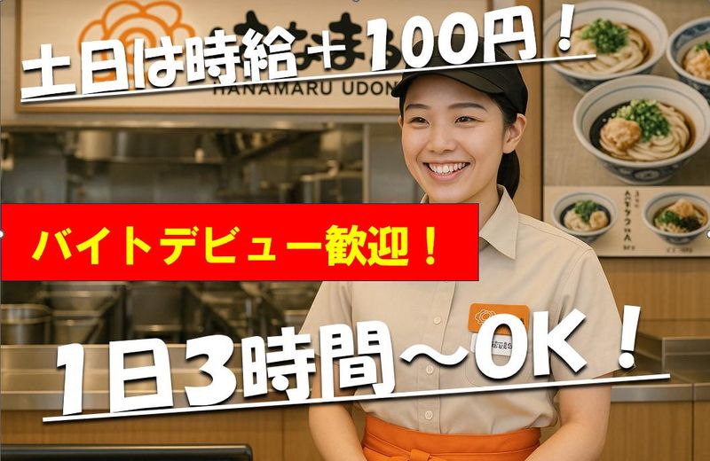 仕事内容 土日限定のはなまるうどんのフードコートスタッフの募集です! 【具体的なお仕事内容】 *カウンター形式のお店での接客対応 *うどんを茹でたり天ぷらを揚げるなどの調理 【ここで働くポイント】 ☆週末のみのアルバイトだから授業やプライベートと両立◎ ☆マニュアル完備で最初は先輩がつきっきり教えてくれるから未経験でも大丈夫! 「注文取り」「料理の配膳」「水つぎ足し」といった作業はナシ! 初バイトやブランクのある方でも安心◎ 片づけもセルフなのでお客様が持ってきてくれます♪ ☆勤務開始時期相談ok!扶養内勤務ok 当店では、明るい笑顔と元気な挨拶が大切なお仕事です。 また、スタッフ同士のチームワークを大切にし、楽しく働ける環境を整えています。 一緒に成長し、笑顔あふれるお店作りに参加しませんか?