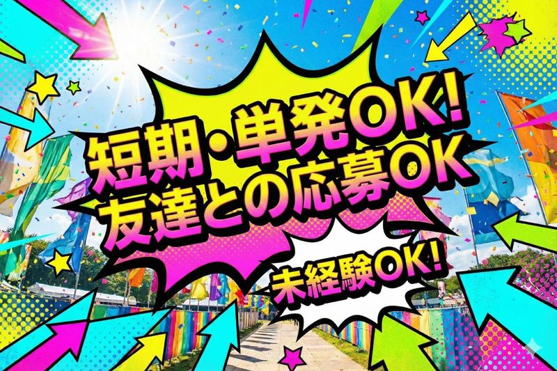 仕事内容 ◤◢◤◢◤◢◤◢◤◢◤◢◤◢◤◢◤◢◤◢ 今年もこのイベントの時期がやってきたゾ! GW限定!短期・単発・1日ダケも大歓迎♪ ⭐フェス運営のサポートstaff大募集⭐ ◤◢◤◢◤◢◤◢◤◢◤◢◤◢◤◢◤◢◤◢ ~ 会場の“快適さ”を支えるお仕事 ~ ~ 音楽が流れる空間で働けます♪ ~ ※仮設トイレ清掃はありません。 ──────────── ■主な担当業務 ──────────── ✅使用済みのダスター回収と補充 ✅台車でのごみ袋回収 ✅分別のご案内 ✅ごみ袋の取り替え ──────────── ■1日の流れ(シンプル) ──────────── 【集合】 指定場所で担当者と合流 【受付】 注意事項の説明を受ける 【配置】 持ち場へ移動 【開始】 リーダー説明後、業務開始 【休憩】 小休憩(交代制) +お昼休憩あり 【終了】 持ち場へ再集合 ↓ 受付で報告・備品返却 ──────────── ■勤務日程 ──────────── 〈開催日〉 5/2・5/3・5/4・5/5 ※準備日・撤収日あり 日程はお気軽にご相談を ★1日のみOK ★最大●日間の短期案件 ──────────── ■ここがポイント ──────────── ・難しい作業なし ・未経験スタート多数 ・質問しやすい体制 来場者からは毎年 「きれいで快適!」と好評。 イベント成功を裏側から 支えるやりがいがあります。 ──────────── ■応募理由いろいろ ──────────── ・表に出ずイベント参加 ・別の形でライブを体感 ・将来のための経験に ・体を動かして働きたい ──────────── ■参加者の声 ──────────── 「想像以上に楽しかった」 「初参加でも安心できた」 「過去最高のバイト体験」 ──────────── ■友人紹介制度あり ──────────── 紹介者へ1,000円支給 (規定あり) GWを有意義に使うなら、 今がチャンスです。