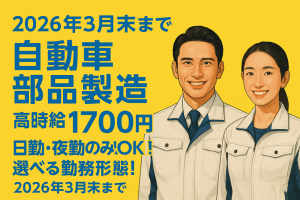車のシート製造/2026年3月末までの短期/選べる勤務形態!