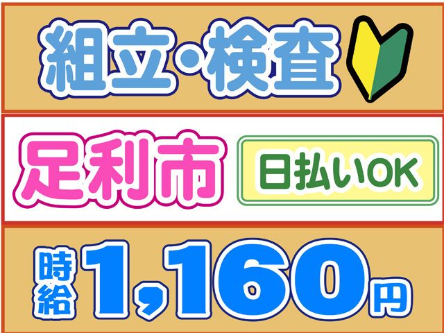 仕事内容 新しく綺麗な職場で快適にお仕事できます 扱う物は軽くて小さいのでラクラク 【組立・検査スタッフのポイント】 〇未経験OK 〇カンタン作業・もくもく作業 〇軽量品ばかりでらくらく 〇日勤のみ ※勤務時間選択OK 〇空調完備&新しい職場 〇土日祝休み 〇20代30代40代女性活躍中 〇日払いOK(規定内) 〇履歴書不要 〇交通費支給(規定内) 〇「マイリク定着支援」導入企業! 【組立・検査スタッフの仕事内容】 足利市にある工場でのお仕事です。 <具体的には> 片手サイズで軽いプラスチック製品の ・検査 ・組立など の 作業をお願いします。 綺麗な工場で空調完備の環境で快適に働けます 製品の検査経験が活かせます もちろん未経験でもOK 職場見学OK(30分~1時間程度) 見学してからお決めいただけます。 【勤務について】 〇日勤のみ 8:30~17:30(実働8時間) 9:00~16:00(実働6時間) ※上記時間選択可能 〇土日祝休みの週休2日制 急な発熱・体調不良・冠婚葬祭など 突発的なお休みに柔軟に対応しております。 【こんな経験活かせます!】 下記経験者は前職活かせます。 〇長期アルバイト・パート 〇製造工場パート・アルバイト 〇組立・組付けパート・アルバイト 〇検査・検品パート・アルバイト 〇軽作業パート・アルバイト 〇工場派遣 〇主婦・主夫パート・中高年パート 前職不問で採用しております。 ブランクのある方もOK(経験の浅い方もOK) ご不明な点はお気軽にお問い合わせください。 お電話でのご応募、ご質問も受付中 株式会社ロフティー 太田支店 TEL0800-222-6888(フリーダイヤル) お仕事情報など採用ページはこちらから https://entori.jp/loftyota コーディネーター・定着支援のWサポート体制導入 「マイリク定着支援」導入企業! アンケートで職場の様子を確認し、 コーディネーター・定着支援担当が連携してサポート。 はじめての派遣でも安心して働けるよう迅速かつ 丁寧にサポート対応いたします。