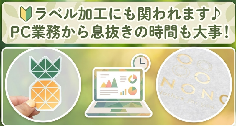 職場環境 PC業務に集中できるスペース完備✨ メインはPC作業ですが、梱包などの 手作業も適度にあるため 気分転換しながら働けるのも◎ 喫煙所:喫煙所あり(屋外)