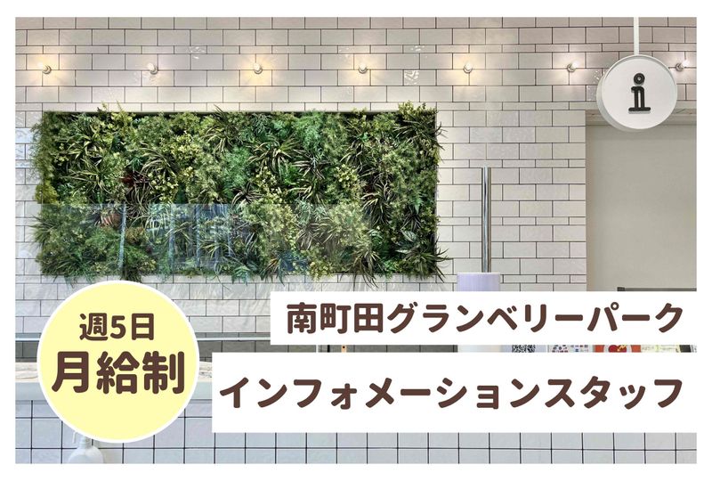 仕事内容 ⭐勤務地はこんな場所♪  ̄ ̄ ̄ ̄ ̄ ̄ ̄ ̄ ̄ ̄ ̄ ̄ ̄ 駅直結 <南町田グランベリーパーク>で インフォメーションのお仕事◎ ご近所の方々から、 海外の方まで幅広く愛される あたたかい雰囲気のショッピングモールです。 館内に2カ所あるインフォメーション。 それぞれに特徴があります。 日によって勤務する場所が変わりますので 毎回新鮮な気分でお仕事♪ ⭐充実した福利厚生  ̄ ̄ ̄ ̄ ̄ ̄ ̄ ̄ ̄ ̄ ̄ ̄ ̄ 月給制だから、 毎月安定的に働けるお仕事。 1日の勤務時間は7時間です。 週2日のお休みに加え、 特別休日の支給や 映画や舞台チケットが 特別価格で手に入る共済会への加入など、 長く続けられるポイントがたくさん◎ ⭐未経験スタートOK  ̄ ̄ ̄ ̄ ̄ ̄ ̄ ̄ ̄ ̄ ̄ ̄ ̄ 未経験から活躍中の先輩スタッフもたくさん◎ 映像での研修 ↓ 座学や自習の時間 ↓ 館内放送の練習 ↓ OJT ↓ ✨デビュー✨ 研修は1カ月程かけて じっくり行いますので、安心してくださいね♪ ⭐特別仕様の制服あり♪  ̄ ̄ ̄ ̄ ̄ ̄ ̄ ̄ ̄ ̄ ̄ ̄ ̄ 着用いただく制服は 誰もが知るあのブランドが 手がけた完全オリジナル。 アイボリーのブラウスと キャメルカラーのスカートが 一体になった、ワンピース型の制服です。 (秋冬シーズンの場合) 可愛さと着心地の良さを両立していて スタッフからも大好評♪ \マニュアルありで安心/ ・お客様のご対応(店舗場所のご案内など) ・忘れ物の受付 ・迷子の保護 ・電話対応 ・ベビーカーの貸し出し ・店内放送 ・その他事務作業 (日報の入力等でPCを使用します) ※改正職安法で追加された明示事項等は 面接時にお伝えします