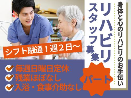 【毎週日曜日休み】働き方ご相談ください⇒週2日~相談OK◎残業ほぼなし!入浴・食事介助なし!