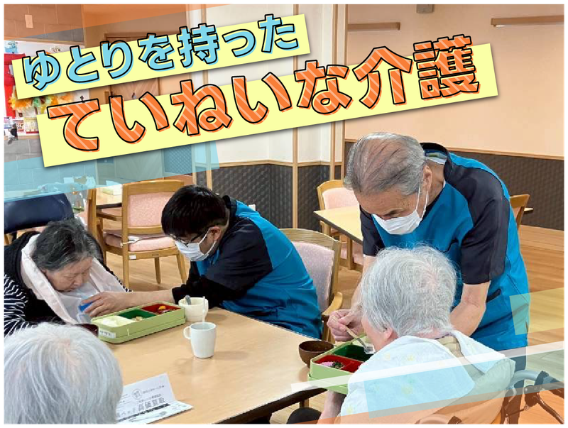 求めている人材 ・介護職員初任者研修修了者(ホームヘルパー2級)以上 ・社会人経験のある方 ◆施設介護の経験がある方大歓迎! ◆土日祝勤務できる方、夜勤できる方歓迎 ー <ご利用者様が楽しく過ごせるように日々努めています> ・第二の家のようにくつろいでいただける施設として ご利用者様と家族のように 朗らかなコミュニケーションがとれる方を歓迎しています! ・皆様に愛されるアットホームな施設づくりを 共にしてくださる方をお待ちしています。 <資格取得支援でキャリアアップ可能> 一緒に働く介護スタッフは全員資格所持者です。 全員であなたをフォローする環境が整っていますよ。 今よりスタッフの負担を軽くするための増員募集です。