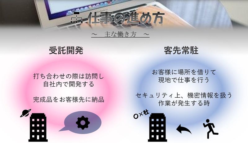 求めている人材 ⭐️当社は「人柄重視」の採用です⭐️ 経験やスキルよりも、 これから成長したいという気持ちを大切にしています。 ★未経験歓迎 ★第二新卒歓迎 ★高卒以上 ★実務経験・資格不問 【こんな方、大歓迎!】 ・コンピュータが好きな方 ・好奇心旺盛な方 ・新しいことにチャレンジしたい方 ・一生モノのスキルを身につけたい方 【当社が大切にしていること】 当社のモットーは、 「仕事を楽しもう!」 興味や好奇心を持ち続け、 楽しみながら学べる方にピッタリの環境です。 【チームで成長する文化】 自分ひとりでできることには 限界があります。 だからこそ当社では、仲間と 協力しながら、それぞれの 知識や強みを活かして 成長していきます。 チームで支え合いながら成長したい 方をお待ちしています!