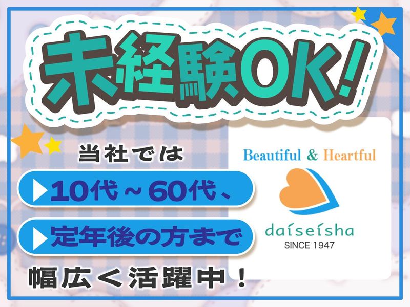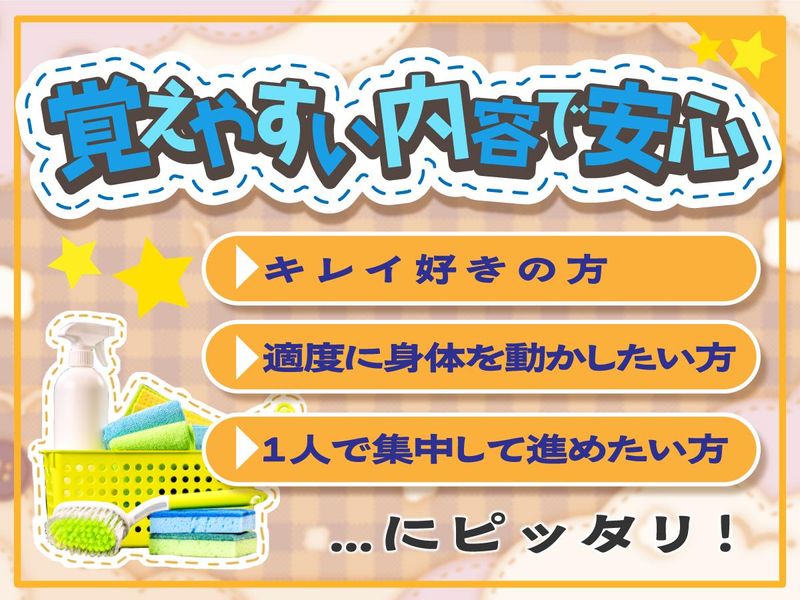 求めている人材 ★未経験OK ★女性活躍中の職場 ★日曜日に出勤できる方、大歓迎! 「初めての方」「ブランクのある方」「清掃のお仕事経験がある方」も大歓迎♪ 「キレイ好き」 「適度に身体を動かしたい」 「Wワークで探している」 「モクモクと取り組みたい」 など、一つでも当てはまる方、大歓迎です! 「大清社」では、10代~60代、ミドル、シニア、定年後の方まで幅広く活躍中です♪