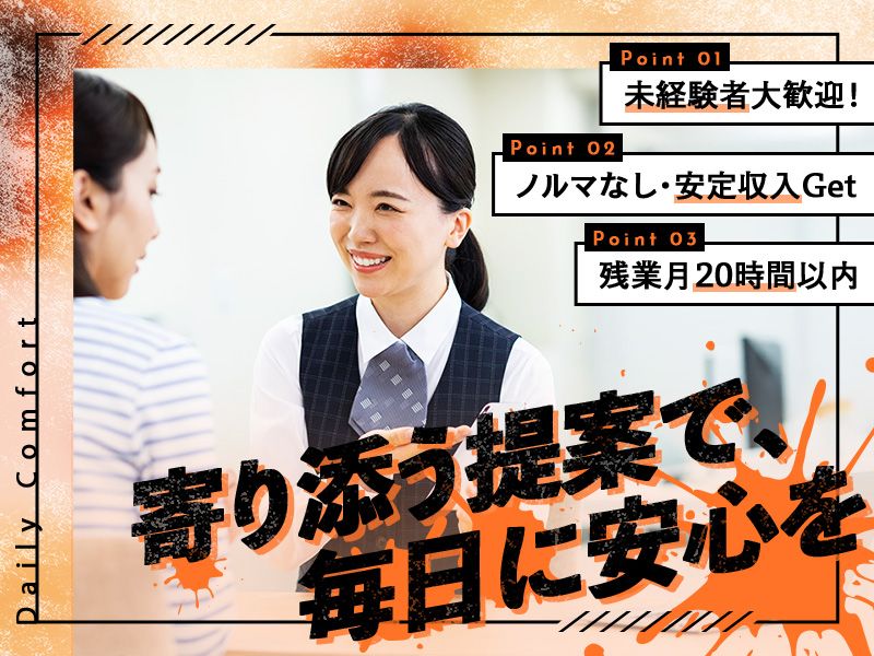 アピールポイント ●安定した収入をしっかり確保 ・・・・・・・・・・・・・・・・・・・・・・・ 月給27万円スタート! 個人ノルマは一切なく、 毎月安定した収入を得られます。 ●プライベートを大切にできる ・・・・・・・・・・・・・・・・・・・・・・・ 残業は月20時間以内と少なめ。 希望休も通りやすく、土日休みも可能! 仕事後の予定も立てやすい環境です。 ●充実の福利厚生 ・・・・・・・・・・・・・・・・・・・・・・・ 寮・社宅制度を完備しているので、 遠方から応募される方も安心。 住まいの心配なくスタートできます。 ●安心のサポート体制 ・・・・・・・・・・・・・・・・・・・・・・・ 2日間の座学研修に加え、 現場ではマンツーマンでのOJTを実施。 初めての方も着実に成長できます。