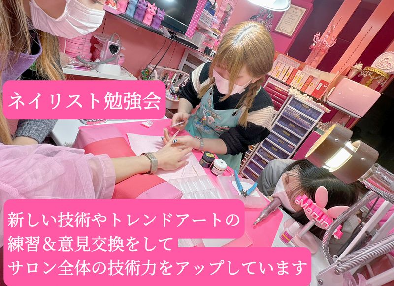 仕事内容: ★オタクのお客様、派手ネイルが好きなお客様多数★ お客様と一緒に「かわいい!」を楽しむネイリスト。その他サロン業務全般。 Instagram→ @msnail_1000 ★ソシャゲやVtuber、アイドル、俳優、二次元などなどお客様と「推し」の話で盛り上がりながらかわいいネイルアートを提供できる方、お待ちしています! ★どこよりも種類豊富なパーツ・カラー ★コースは「時間内デザイン自由」。お客様と自由な発想でオンリーワンのアートを作ります。 ★メインのお客様は流行に敏感な10〜40代の女性です。 ★アイラッシュサロンも併設しているため、アイリストチームとも協力しながらお客様の「かわいい」をお手伝いしています。