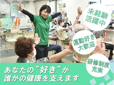 仕事内容 \楽しく体を動かすリハビリ!/ 音楽に合わせたストレッチやリズム運動、ボールやマシンを使ったトレーニングなど、楽しみながら機能向上を目指せるのがジョイリハの魅力! “指導する”というより“ご利用者様と一緒に楽しむ”感覚で取り組めるため、スタッフ自身も笑顔でリハビリに参加できる職場です♪ 【仕事内容】 リハビリ施設で、ご利用者様の運動サポートや見守り、誘導、軽介助をお任せします。 その他にも、受付対応・清掃・簡単なPC入力など、施設運営に関わる業務もお願いします。 <お仕事の流れ(一例)> ・ご利用者様の体調チェック(血圧測定など) ・その日の状態にあわせたプログラムを作成 ・音楽に合わせた簡単なリズム体操やストレッチ ・マシンやボールを使った個別機能訓練 ・生活相談員との連携で心と身体の両面をサポート 【ここがポイント】 ◎未経験・無資格OK!充実した研修でしっかりサポート ◎「体を動かすのが好き」「人と話すのが好き」な方にピッタリ♪ ◎まずはご利用者様のお話し相手からスタート! ◎残業ほぼなし!プライベートとの両立も◎ 【ジョイリハの想い】 私たちは、楽しさの中にある有効なリハビリプログラムを通じて、 ご利用者様一人ひとりの「できる」を引き出し、社会参加の機会を広げていくことを使命としています。 “予防”も“リハビリ”も“地域貢献”も、本気で取り組むからこそ、やりがいがある。 そんな想いに共感していただける方をお待ちしています。