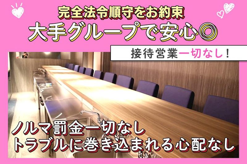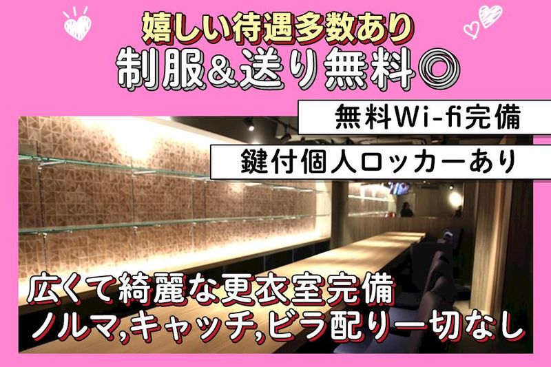 【保険制度】 雇用保険、労災保険、健康保険、厚生年金 待遇・福利厚生 【福利厚生】 ⭐MAX時給1万円以上も可能です♪ ⭐深夜1時以降500円UP ✅がんばり次第でいつでも昇給 ✅日払い&手渡しOK ✅各種高額バックあり ┣ボトル,フード…20% ┣ドリンク…1杯800円 ┗他あり ✅接待行為などの違法営業ナシ ✅ノルマ・ビラ配り・客引き一切ナシ ✅制服・靴は無料でレンタル ✅全員分の鍵付き個人ロッカー完備 ✅広くて着替えやすい更衣室 ✅身バレ対策の徹底 ✅無料Wi-Fi完備 ✅送り無料 ✨入店祝金3万円 ✨お友達紹介特典 1人につき5万円 ※祝金・特典ともに条件あり ✨日払い&全額手渡しOK ✨各種高額バックあり ✨お酒が飲めなくてもOK ✨髪色・ピアス・タトゥー自由