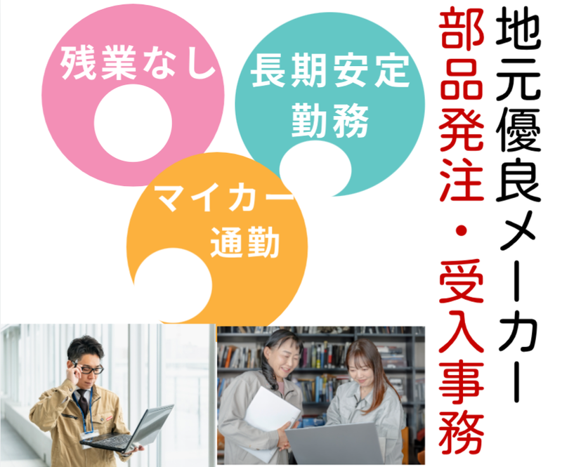 仕事内容 機械装置メーカー本社の購買部門での仕事です。 毎日届く部品やパーツの入庫と、各部門への配布に係る事務処理がメインです。 力仕事ではありませんが、多少の軽作業はあります。 ●注文した商品の受入れ確認 ・商品名と数量の確認 ・不良品がないかの確認 ●各部署への連絡と配布 ・依頼元部署への連絡、棚入れ、お届け ・伝票仕分け、データ入力 ●不良品や、注文と異なる商品の返品処理 ●発注事務 ・各部門から依頼された部品の注文処理 【ジェイ・トレイの強み】 ◯社会を支える安定企業で働ける ジェイ・トレイは、発電所やプラントなど、社会インフラを支える設備づくりに携わる会社です。 景気に左右されにくく、長期的に安定して働ける環境が整っています。 ◯専門性を活かせる・身につく 解析・設計・製作・施工まで一貫して行う技術系企業なので、 専門スキルを活かしたり、新しい技術を学んだりしながらステップアップが可能です。 ◯未経験からのチャレンジも歓迎 経験よりも「やってみたい」という気持ちを重視。 先輩が丁寧にサポートする体制があるので、安心してスタートできます。 ◯チームワークの良さが自慢 部署を越えて協力し合う社風で、わからないこともすぐ相談できます。 職場の雰囲気がよく、長く働いているスタッフも多数在籍しています。 ◯やりがいのある仕事 自分の仕事が、社会の安心・安全を支えているという実感があります。 誇りを持って働ける環境です。