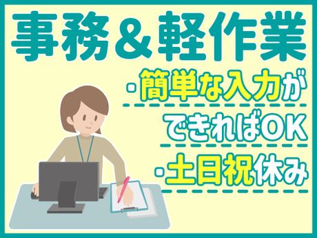 ■土日祝休み・日勤で安定!残業ほとんど無し◎数字の入力がメイン!事務の手が空いた時は現場軽作業のお手伝いをお願いします☆
