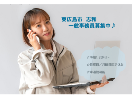 求人詳細 女性活躍中♪\日曜日固定休みGET!!事務職をお探しの方必見!!/物流会社での一般事務員 【給与】 時給1,200円~1,500円 【シフト】 週5日、1日8時間以上 【勤務地】 東広島市 【最寄り駅】 八本松駅 ~東広島市でお仕事お探しの方~ 物流会社での一般事務員さん募集中!! 家電を取り扱っている有名な企業♪ \予定も立てやすい日・月固定休み!/ 時間帯も豊富で自分に合った働き方が可能♪ 研修体制も整っています! これまでの事務経験を活かしたい方大歓迎♪ 倉庫内で働いている方たちをサポート!! 髪色やネイルなど派手ではなければOK♪ 働きやすい環境です!! 『少しでも気になるな・・』と思った方はまずはご応募お待ちしております!! 《注目ポイント》 事務経験者大歓迎!!PC操作が出来る方は未経験でも相談可能! 車通勤可能 日払いOK‼ 年1回ボーナス支給あり 試用期間詳細 試用期間なし 勤務期間 長期(3ヶ月以上) 勤務形態 固定時間制 特徴・メリット 高収入・高時給/日払い/週払い/PC活用/すぐ働ける 社会保険 健康保険/厚生年金/雇用保険/労災保険 応募後のプロセス エントリー後弊社(080-3545-1997)からご連絡差し上げます。 応募先電話番号 082-503-7071 ◆受付時間 火~木 9:00~18:00 月・金 10:00~19:00 土・日・祝 ネット応募のみ受付 ※ネット応募は、営業日17時までのご応募を(080-3545-1997 応募対応携帯)から当日中にお電話させていただきます。 ※土日祝のご応募はネット応募のみ受付となり、翌営業日にご連絡させていただきます。 ※GW・お盆・年末年始等の大型連休はネット応募のみ受付となり、翌営業日のご連絡となります。 尚、お急ぎで確認を取られたい方は、(082-503-7071 採用担当)までご連絡ください。