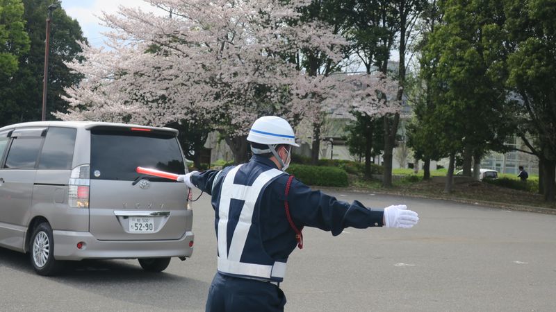 剪定工事の誘導スタッフ