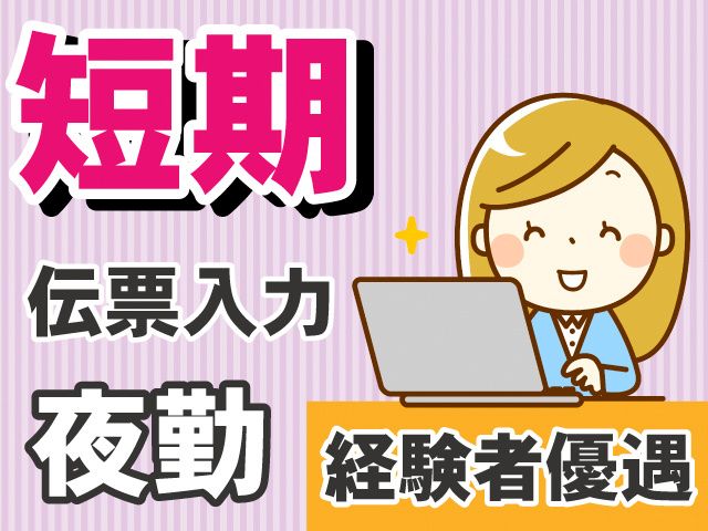 仕事内容 短期の事務アルバイト募集中! 【期間】2026年6月初旬頃~2026年7月15日頃まで 短時間の夜勤ワーク! 青果市場にて、伝票入力などの事務のお仕事です。 簡単な事務作業ですので、 お仕事のブランクがある方も安心です。 PCスキルは文字入力が可能であればOK! 事務職未経験の方はもちろん、 一般事務などでの経験を活かしたい方もお待ちしております! 短期アルバイトをお探しの方はもちろん、 サクランボなどの青果物に関するお仕事に興味のある方にもオススメ! <ポイント> ・未経験OK 特別な経験、資格は不要です。 ・夜間の勤務 夜勤でしっかり稼ぎませんか? ・幅広い年代が活用中の職場 学生さん、主婦(夫)、シニア(中高年)世代の方などが多数活躍中!