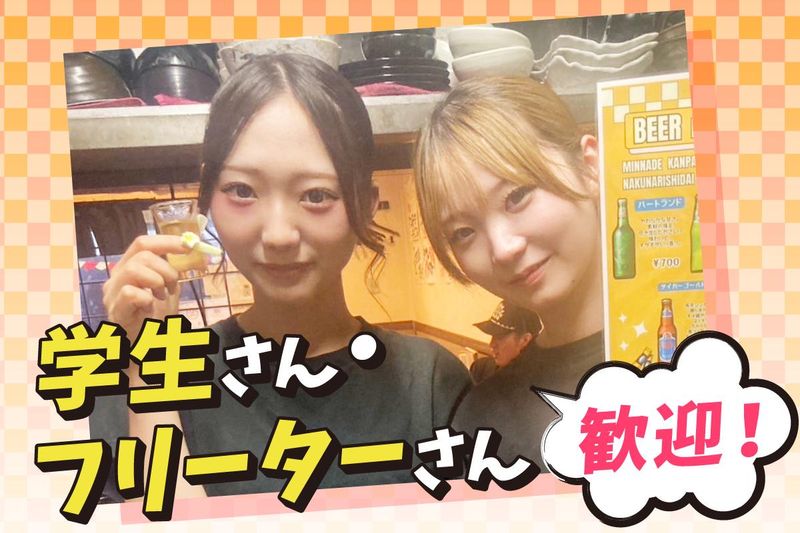 勤務時間詳細 ・17:00~翌1:00(日曜日~木曜日) ・17:00~翌1:00(金曜日・土曜日・祝前日) 上記の間で1日4h~OK!