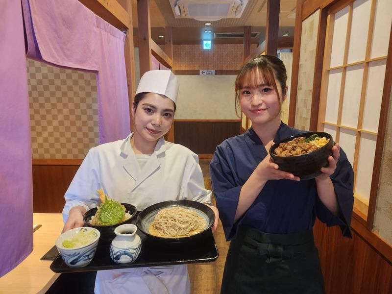 仕事内容 石臼挽き生そばと炭火焼肉丼が併設の店舗です。 落ち着いた雰囲気の新しいお店です。 土日に出勤できる方大歓迎*・。 →土日出れる方は昇給有! (3ヶ月毎の評価制度) 【具体的な仕事内容】 ホールのお仕事→ カンタンなお仕事からスタート! 接客の仕方やお会計などイチから 丁寧に教えていきますので安心〇 オーダー、料理の提供&片付け、 会計などが中心。まずは店内見学から 席の番号を覚えたら配膳をお任せ! 最初はわからないことが多いと思うので 「いらっしゃいませ~!」と元気に 挨拶ができればOKです〇 キッチンのお仕事→ カンタンなお仕事からスタート! 料理の盛り付け、 野菜のカット方法などイチから 丁寧に教えていきますので安心〇 メニューを覚えてからは簡単な仕込み、 盛付け等の調理補助をお任せ! いきなり包丁を持ってお願いします などはしないので安心して下さい。 家料理のレパートリーが増えた! など嬉しい声も!! 調理師免許取得支援制度もあります〇 「稼ぎたいからガッツリ働きたい」 「正直、勉強・遊びも超大事! だから時間は無駄にしない!」 そんなみなさんにぴったりです! 【美味しいまかない !】 まかないはなんと無料!メニューの中から お好きなものを選んで下さいね! カツ丼や天丼・焼肉丼まで!種類は豊富! スタッフからは 「食費が浮くので一人暮らし としては助かります!(笑)」 「お店で出している食材なので めちゃくちゃうまいんです!」 という声も*・。 【アクセスも便利!】 学校帰りに勤務する学生の方や 自転車圏内だからと働くstaffも多数! 車での通勤も大丈夫なので、雨の日も安心!