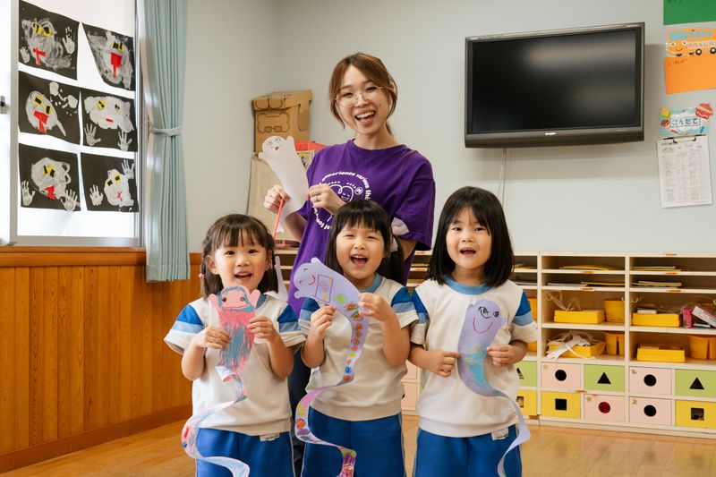 アピールポイント 〇在籍30年以上のベテランも在籍! →20代~40代が中心となって活躍中。 現在スタッフ33人(保育教諭は26人) で日々の業務に取り組んでいます! 〇スタッフの負担を徹底的に軽減! →装飾・イベントの準備など 1から何かを製作することはありません! 行事の回数なども調整しています〇 〇情報共有はアプリで! →毎日15時~15時半に担任・園長・主管で 報告会を開き、その内容をアプリ上で 全員に共有しています! 〇相談しやすい環境です! 週1回の園内研修で悩みや疑問を共有し、 話し合って課題を解決しています。 誰もが発言しやすい雰囲気づくりに 取り組んでいるのでご安心ください!