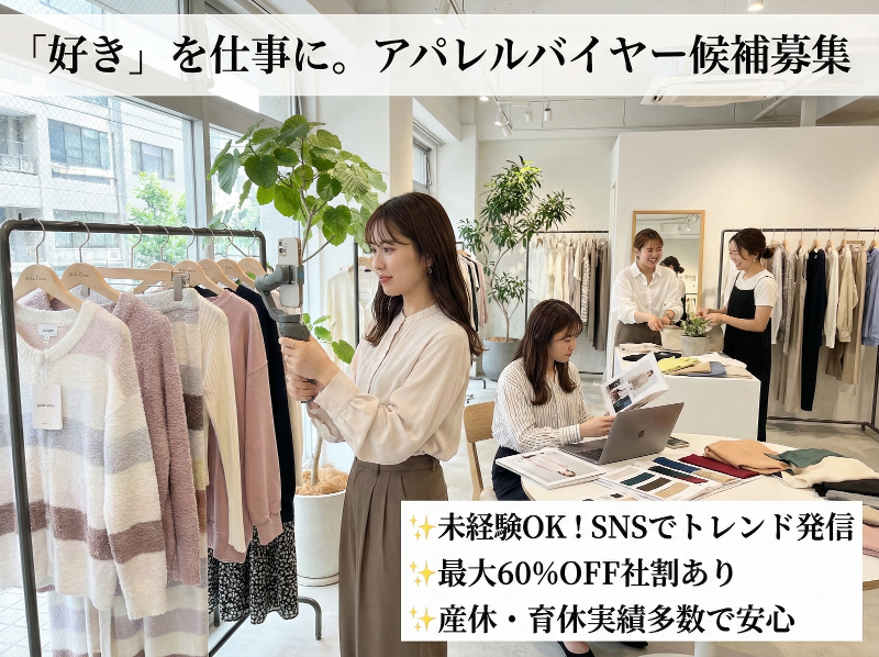 アピールポイント: ✨ 成果がダイレクトに返ってくる「仕入れ」の醍醐味 自分が「これは来る!」と見込んで仕入れたアイテムが、SNSや店頭で即完売した時の達成感は格別です。自分の目利きが数字として表れるため、ビジネスとしての面白さを実感できます。 ✨ 実力主義の評価制度で高収入を実現 年功序列ではなく、企画力や読みの鋭さ、売上貢献度を正当に評価します。「どれだけ安く仕入れ、どれだけ価値を伝えて売ったか」というバイヤーとしての実績次第で、月給45万円以上の高収入も現実的な目標です。 ✨ ファッション感度の高い仲間と切磋琢磨 「韓国トレンド」「ハイブランド」「美容」など、様々なジャンルにアンテナを張っているスタッフが集まっています。休憩時間やミーティングでの情報交換が、そのまま次のヒット企画のヒントになることも日常茶飯事です。
