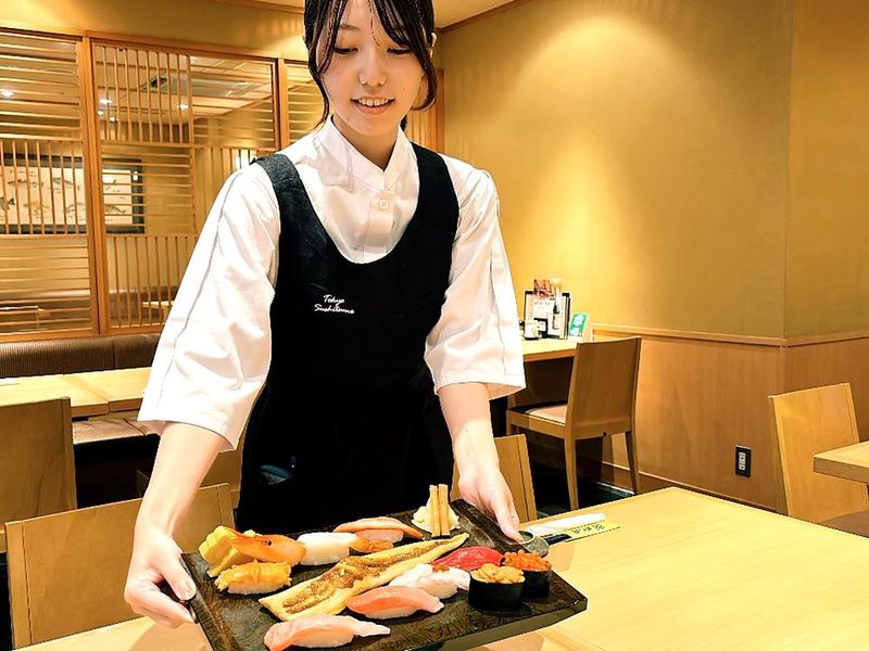 仕事内容 <具体的には> *店舗清掃 *テーブルセッティング *お客様のご案内・ご予約確認 *オーダー受け *料理・飲み物の提供 *テーブル片付け *お会計 等 寿司・和食店のホールスタッフとして「接客」「お会計」等が主な仕事です!時々、洗い物を手伝って頂くこともありますが調理は一切ナシ!確かな味×誰もが楽しめる寿司屋として、地域の方に愛されています♪各店に江戸前寿しの職人、キッチン調理補助、洗い場スタッフ等、様々な職種の仲間が在籍し分業で運営♪だから「ホール・接客」staffはお客様へのご案内やサービスに集中できます!10代の高校生から、60代まで幅広い世代が活躍中。 寿司・和食店ならではの贅沢まかないも魅力!200円で天丼やちらし寿司が食べられるのも嬉しい職場です♪スタッフの中には板前や調理スタッフについて、盛り付けを覚えてみたり、料理長にレシピを教えてもらったりしながら、家庭で再現するスタッフもいます♪ <POINT> *週2日~、1日3h~勤務OK!自由度の高いシフト *長期はもちろん、期間限定(短期)もOK! *バイトデビュー、飲食店未経験も大丈夫! *ランチ・ディナー問わずまかないアリ *休憩室・Wifi環境が完備 *駅近で雨の日も安心! *土日祝は時給100円up!頑張るスタッフを応援 *面接時に履歴書不要!友達同士の応募も歓迎 *24hどこでも対応可能なAI面接も導入!(対面か選べます!) *幅広い世代が活躍し、中には親子で働くStaffも在籍 <お店紹介> 東京都・神奈川県・埼玉県に全20店舗展開!全店に熟練の寿司職人さんがいて、厳選したネタで握る江戸前寿司はもちろん和食料理までメニュー豊富。staffの中にはお祝い時に特別な握りをテイクアウトしたり、休日に家族や友人と来店する光景も見られます! 店舗は駅ナカ・駅前・商業施設内等のアクセス便利な場所に展開し、清潔感とアットホーム感を大切にしています。リピーターさんも多く、お声がけ頂くことも!おかげ様で連日多くのお客様にお越し頂いており、お子さんから、ご年配の方まで、お客様層がとっても広いのも当店の特徴です!だからこそ、ご家族のお祝いごとや仕事の打ち合わせ、プチ忘年会・新年会・歓送迎をはじめ、仕事帰りに一杯嗜みたいお客様まで、大切な時間を彩ることが多い空間でもあります。お客様の大切な時間に、お料理で華を添えられるお仕事です。