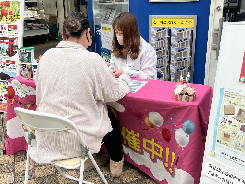 【雇用形態】 アルバイト・パート 【職種】 葬祭施設のイベント接客スタッフ/10時から 【仕事内容】 当施設のサービスの各種PRや簡単なアンケート調査などをお任せします。 【仕事の特徴】 お客様に葬儀プランなど説明や、終活相談会などの企画のPRや、簡単なアンケート調査などのお仕事をお任せします。 研修があるため葬儀のマナーが身につきます。 サポート体制もあり、経験や年齢問わず、どなたでも安心して始めていただけます。 平日のみ、1日4時間、残業はほぼ無しです。 急なお休みなどにも柔軟に対応可能。それぞれの事情に合わせて働けるので、お気軽に相談ください。 ・葬儀会館での仕事に以前から興味があった、葬祭プランナーに興味がある、テレビ・映画をみてどんな仕事かやってみたい、動機は何でも構いません!お気軽にお問い合わせください。 ・駅チカ・Wワーク可・扶養内勤務可! 未経験者歓迎,学歴不問,経験不問,週2・3日からOK,シフト制,扶養内勤務OK,副業・WワークOK,髪型・髪色自由,交通費支給,研修あり,土日祝休み,駅近5分以内,社員登用あり,アルバイト・パート,長期,長期休暇あり,原則定時退社,主婦・主夫歓迎,1日4時間以内OK,女性活躍中,自転車通勤OK,ネイルOK,ピアスOK,40代も応募可,50代も応募可,友達と応募OK,即日勤務OK