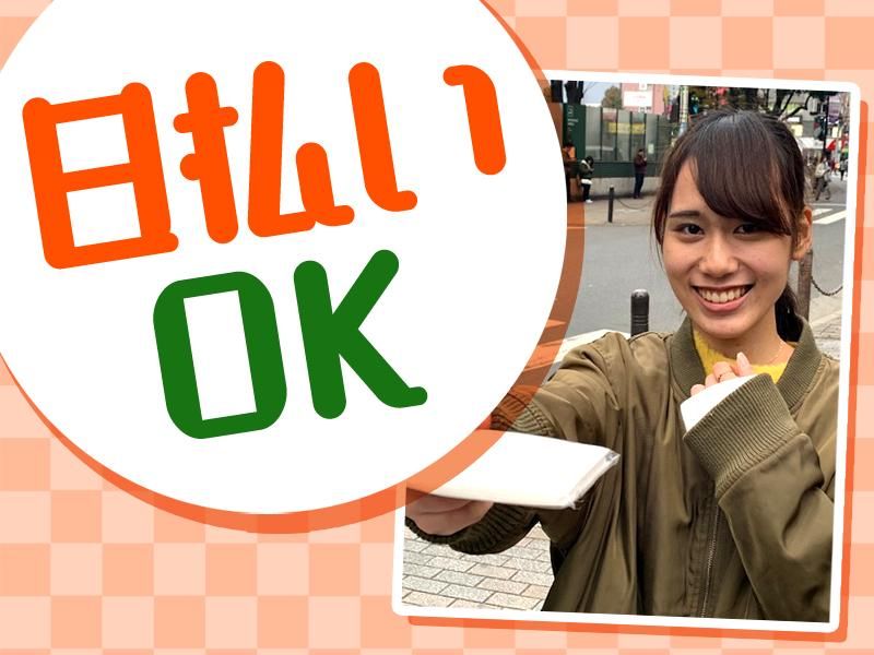 仕事内容 ▼▽▼▽▼▽▼▽▼▽▼▽▼▽▼▽▼▽▼ (*'▽')<1日2h~スキマ時間で働ける♪ <全て駅チカ!>週0日も長期間も勤務OK ✨ノルマ無し ✨短期OK ✨日払い可能 ✨履歴書不要 ✨選べる勤務地多数あり♪ ▲△▲△▲△▲△▲△▲△▲△▲△▲△▲ 駅前やお店の前でチラシ配りや ティッシュ配りのお仕事をお任せします◎ 配布中の水分補給OK! 難しいスキル不要の簡単な街頭配布♪ ≪新人さん限定≫ ☆ボーナスキャンペーン実施中☆ 【配布するもの】 スポーツクラブ、買取専門店、 音楽教室、パソコン教室、 飲食店等のポケットティッシュやチラシ配布 ✨未経験者の方でも安心スタート!  ̄ ̄ ̄ ̄ ̄ ̄ ̄ ̄ ̄ ̄ ̄ ̄ ̄ ̄ ̄ ̄ ̄ ̄ ̄ まずは丁寧にお仕事の流れなどを ご説明するので、ご安心ください。 1人で不安な方はお友達と一緒に応募もOK♪ 一度登録すれば好きな日に働けます! 1ヶ月に1回だけの勤務も◎ ✨勤務希望の前日までにLINEでシフト提出!  ̄ ̄ ̄ ̄ ̄ ̄ ̄ ̄ ̄ ̄ ̄ ̄ ̄ ̄ ̄ ̄ ̄ ̄ ̄ 「来週はテストがあるから週0日」 「旅行前にガッツリ働きたい」 「推し活の合間にサクッと」など、 1日2h~細かいスケジュール設定が可能。 働き方の希望は最大限考慮します♪ ✨新宿駅スグ!登録説明会毎日開催中!  ̄ ̄ ̄ ̄ ̄ ̄ ̄ ̄ ̄ ̄ ̄ ̄ ̄ ̄ ̄ ̄ ̄ ̄ ̄ 登録説明会は「新宿駅」で毎日開催♪ 忙しくて新宿登録説明会に来られない… という方や、遠方にお住いの方は 10~15分のビデオ通話でサクッと登録完了◎ 即日勤務も大歓迎です!! ✨おすすめポイント ✅ ノルマなしでストレスフリー ✅ 週0~OKの自由シフト ✅ 単発もOK!空いてる日にサクッと ✅ 友だちと一緒に応募OK ✅ 履歴書不要・即日スタートOK ✅ LINEでカンタンシフト提出 ✅ 日払いOKで即お給料GET ✅ 茶髪OK(男性はこげ茶) ✅ 派手すぎなければネイルOK♪