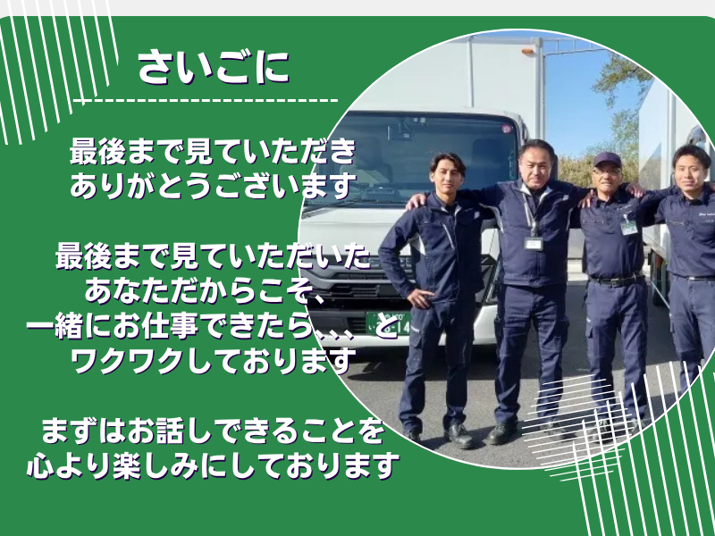 求めている人材 《未経験歓迎|学歴不問》 <必須資格> ・普通自動車免許をお持ちの方 *資格取得支援制度有り \下記に当てはまる方も大歓迎!/ ★AT車限定免許しか持っていない方 →配送車両はAT車です♪ 製造業、建設業、営業、飲食業、IT関連業とさまざまな業種から転職してきたスタッフが活躍しています♪