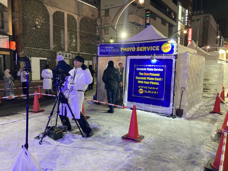 仕事内容 さっぽろ雪まつり「すすきのアイスワールド」会場でお客様の写真を撮影及び販売するお仕事です。 勤務期間は2月4日~2月11日(8日間) 具体的にはお客様にサービスの説明を行ったり撮影を行ったり写真の販売を6名程度のスタッフの 皆様にお願いいたします。(事前研修あり) 撮影と言ってもとても簡単で研修後は誰でもすぐに働く事が出来ますので未経験の方でも心配はありません。 勤務時間は15時~22時30分まで(休憩30分。勤務時間は相談可能) 勤務地は札幌市中央区南5条西3丁目にある「すすきのアイスワールド」会場内となります。 アクセスは地下鉄駅から徒歩3分です。