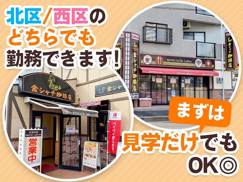 仕事内容 ✨早朝時給1200円~/通常時給1150円~ ✨幅広い年代のスタッフさんが活躍中◎ (10~20代・30~40代・50~60代) 主婦さん・フリーターさん・学生さん等 ✨未経験者大歓迎! ✨バイトデビューも大歓迎!(高校生もOK) 街のリビングルームとして地域に愛される 人気のカフェです おかげ様で「金シャチ珈琲店」も誕生して 黒川店は14年、又穂店は8年になります <具体的な仕事内容> ◆ホール業務 ・お客様のご案内 ・注文のお伺い ・ドリンク・料理の提供 ・テーブル片付け ・レジ会計 ・清掃 ・ドリンク作り など ご案内やドリンク・料理を運ぶのがメインです♪ ◆キッチン(調理補助)業務 ・簡単な調理、盛り付け、仕込み ・お皿洗い(洗い場)など 覚えるとお家でも簡単に喫茶店の 「サンドウィッチ」が作れますよ♪ <髪型・髪色・ネイルも自由です♪> 清潔感があればOK!華美なものは応相談です♪ <勤務時間・曜日など働き方も自由!> 週2日・1日3時間~勤務OK 早朝のみ、お子様がご帰宅されるまでの 時間のみ等、都合のいい時間帯で働けます! <未経験スタートの方も多数活躍中!> 「今まで飲食・接客業の経験がない」 「育休後の職場復帰で働きたい」など、 未経験の方やブランクがある方もOK! 仕事中にわからないことがあれば 先輩スタッフが丁寧にサポートしていきます。 <お友達同士や親子もOK♪> お友達同士で安心バイトデビュー♪ 親子で働かれている方もおみえになります♪